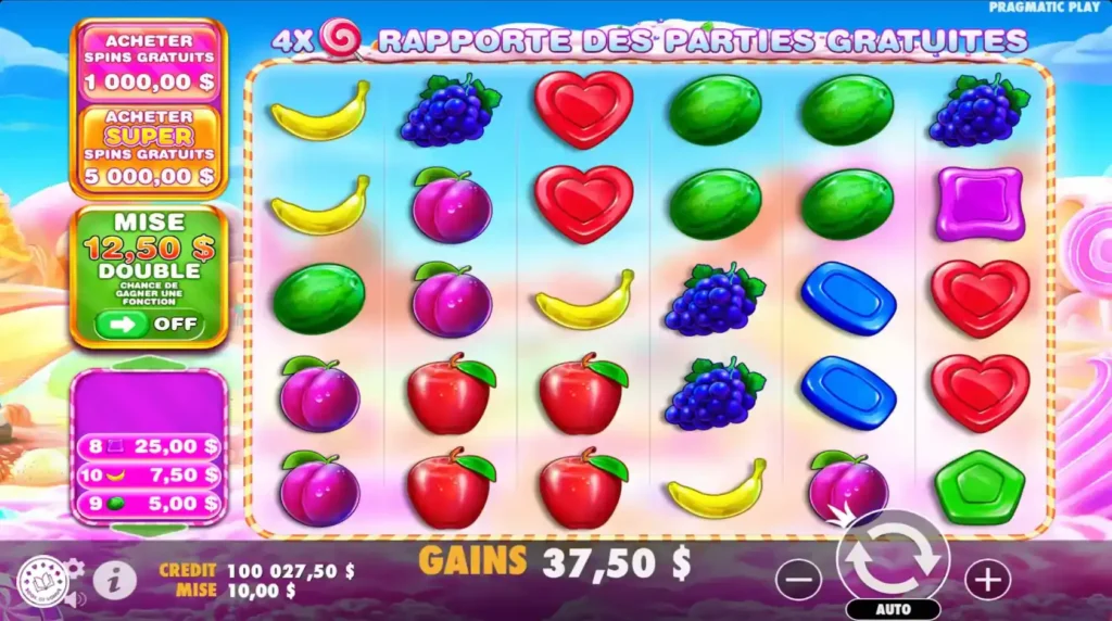 La ronda de giros gratis es el verdadero motor de grandes emociones: se activa con cuatro símbolos scatters (la piruleta) y otorga 10 free spins, con la posibilidad de conseguir adicionales durante la bonificación. Los multiplicadores bomba, exclusivos de los giros gratis, pueden incrementar hasta x100 el premio acumulado, generando potenciales ganancias impresionantes.